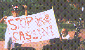 The government, our servants are about to risk our lives by launching 72.3 pounds of Plutonium into a series of orbits that risk this material being vaporized and dispersed over the whole planet. Our Golem is playing GOD. The world must know about this danger. We have less than two months to stop this launch. If you understand this threat, take to the roads, take to the streets, tell your neighbor. Come to Canaveral before the 4th of October. I will be walking South on Highway One wearing an Uncle Sam hat with a mourning band and carrying a flag that says 'STOP CASSINI' . Join me for a while if you can.