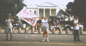 Charles Swiden and I walked in from Baltimore carrying flags and handing out literature as we came. The people we talked with were amazed and angry when they learned that the nation and the world is being exposed to the possibility of a nuclear disaster of a magnitude that has not been matched since the Cuban missile crisis threatened all out nuclear war.