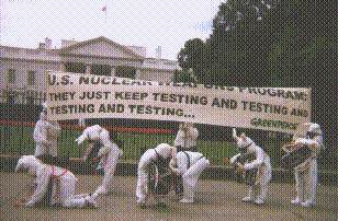 Greenpeace Nuclear Disarmament Campaigner Bruce Hall. "President Clinton has the opportunity to set the pace of progress on nuclear disarmament. These tests are a step in the wrong direction."