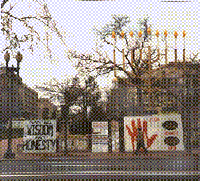 "These signs are like letters to the editor in a newspaper,"said Hale, who has been in the park since February. "Except we put 'em across from the temple of power where people can read 'em. They're a great advertisement that this isn't Russia."