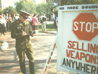 At the Peace Park opposite the White House, men and women were giving out petitions against nuclear