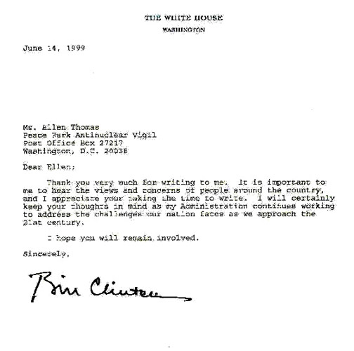 "Dear President Clinton,
