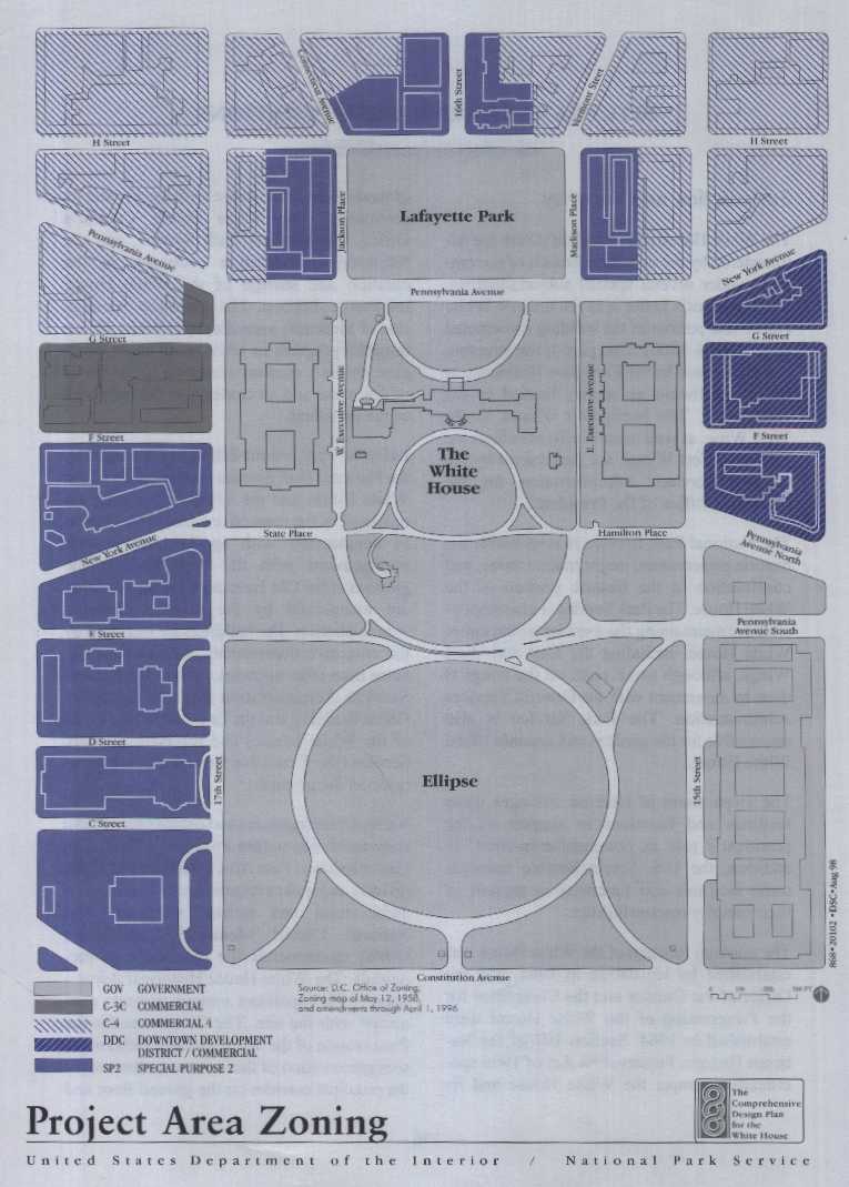 the principal public rooms on the first floor of the White House." Additionally, private groups, like the Lafayette Square Historic Association, monitor public interests in the district and individual sites. Historic associations for the Old Executive Office Building and the Treasury Building have been established to commemorate and preserve the history of each building, and each association provides tours (by reservation only) for its particular building. (Tours of the Treasury Building are staffed by Treasury employees, who volunteer their time.) The National Capital Planning Commission (started in 1926) reviews and approves projects that directly affect the property and its continuing evolution. The Pennsylvania Avenue Development Corporation (1962-96) implemented the renewal of Pennsylvania Avenue from the Capitol to the White House, including Sherman Park and the eastern side of the U.S. Treasury Building.