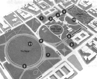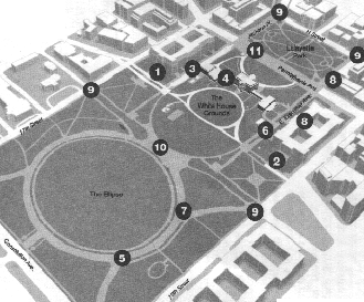 11. Pennsylvania Avenue -- tunneled or closed and redesigned for pedestrian use. (JACKSON AND MADISON PLACES CLOSED)
