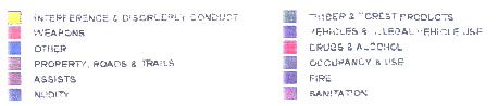 Natural resources and government property were impacted significantly by the Rainbow Family Gathering. Forest Service law enforcement personnel reported 58 related violations. These included, timber and other forest products, property, occupancy and use, littering, and sanitation related violations.