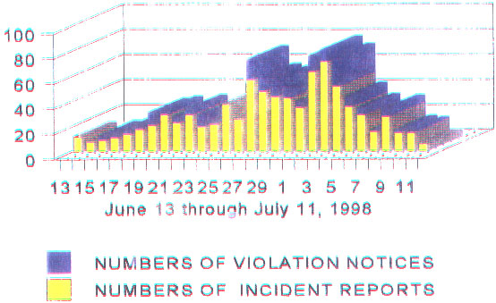 Interagency statistical reporting support was provided by the Arizona Department of Public Safety (DPS) Intelligence Unit. Participating agencies provided a daily statistical report to DPS who compiled the information on a daily Public Safety Activity Report. The incident reporting period was June 13 through July 12,1998.