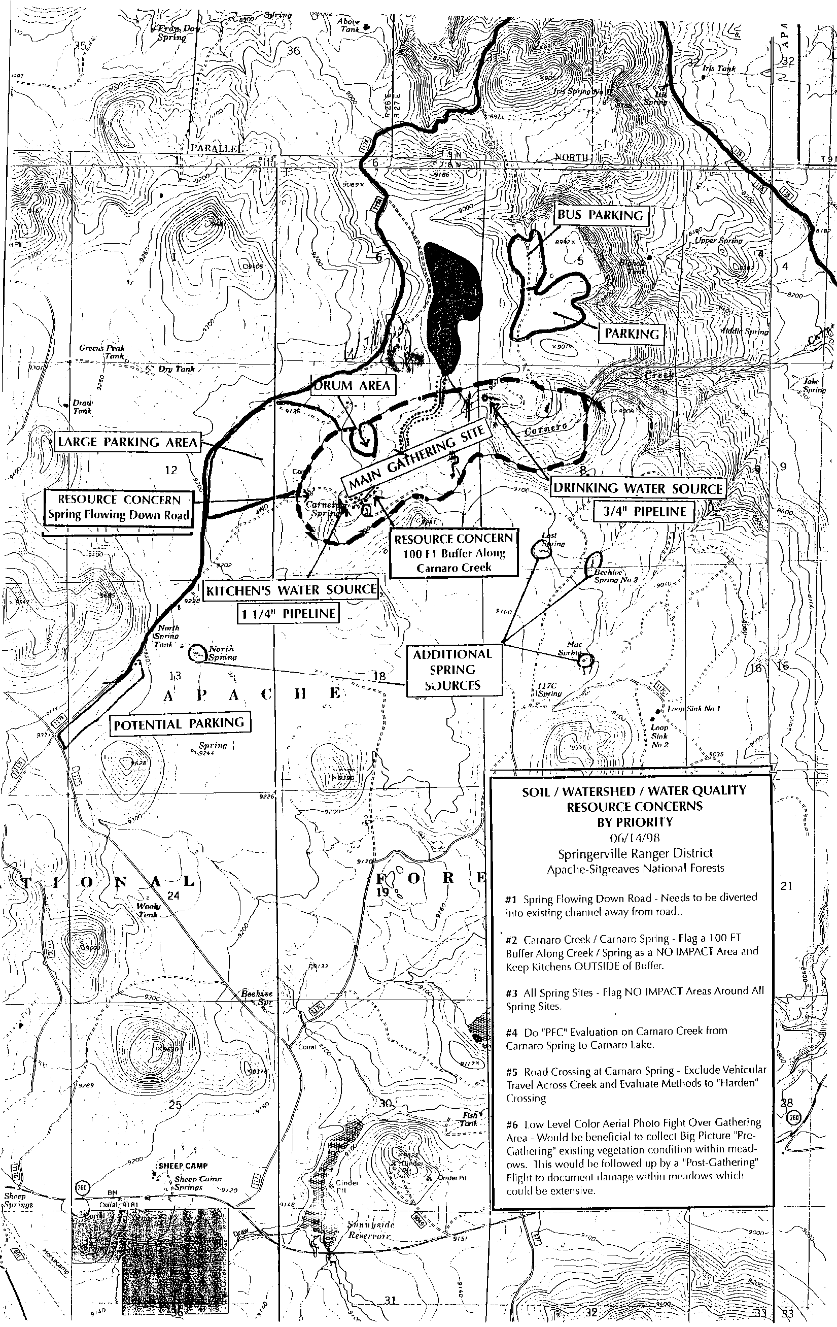 #6 Low Level Color Aerial Photo Fight Over Gathering Area - Would he beneficial to collect Big Picture "Pre-Gathering" existing vegetation condition within mead-ows. This would he followed up by a "Post-Gathering" Flight to document damage within meadows whiich could be extensive.