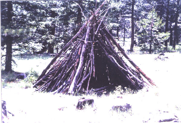 Photo 22: Tepees were built of dead poles and used as shelters, and latrines were sometimes hidden with dead wood stacks. Many of these structures remained.