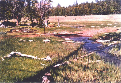 Photo 20: Another wooden foot bridge near Carnero Spring. Most of the wooden bridge materials were scattered, but many rock stepping stone crossings remain.